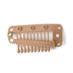 Deze clips zijn eenvoudig te bevestigen in een haarwerk, haarstuk of aan extensions. Gebruik hiervoor een nylon draad en naai de draad door de oogjes van de clip met de tandjes naar binnen. De clips zijn in verschillende maten en vormen leverbaar, met en zonder siliconen rand en/of druppels. De kleinere clips zijn zeer geschikt voor dun/weinig haar. Het is aan te raden de clips na een periode te verplaatsen om kalende plekken in het haar te voorkomen.