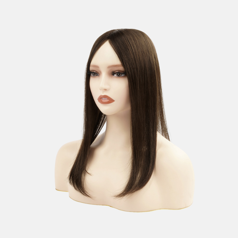 Een premium fine‑welded mono topper met clips, randloos ontworpen en moeiteloos voegend in het eigen haar.